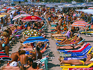 | Fa caldo e questa gente è seduta al sole. | Жарко, и эти люди сидят на солнце. | ||