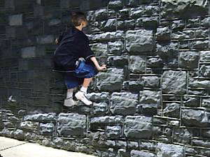 | Il ragazzo è sul muro. Sta arrampicandosi sul muro. | Мальчик на стене. Он карабкается по стене. | ||
