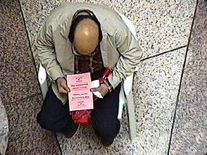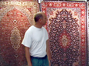 | L’uomo calvo sta guardando il tappeto. | Лысый мужчина смотрит на ковер. | ||