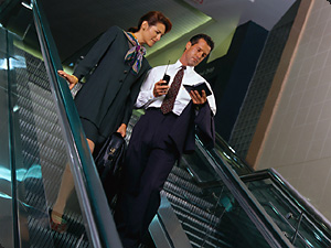 | una coppia che scende la scala mobile | пара, спускающаяся по эскалатору | ||