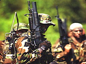 | I soldati portano le armi da fuoco. | Солдаты носят огнестрельное оружие. | ||