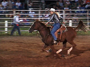 | La donna sta cavalcando velocemente. | Лошадь едет быстро. | ||