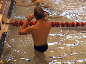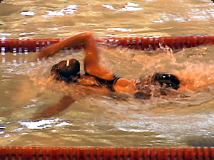 | La donna sta nuotando velocemente. | Пловец в воде, но сейчас он не плывет. | ||