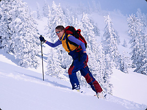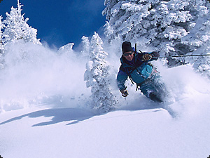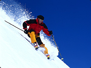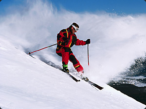 | Il nuotatore è nell’acqua, ma ora non sta nuotando. | Лыжник едет очень быстро. | ||