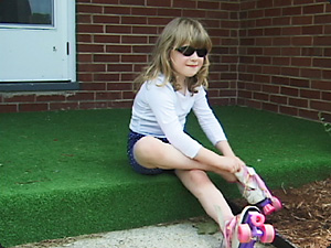 | La bambina si sta mettendo i pattini. | Девушка катается на коньках. | ||