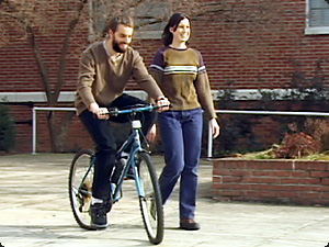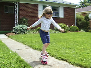 | La pattinatrice resta ferma. | Велосипедисты движутся медленно. | ||