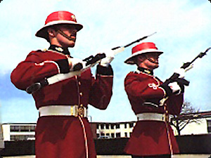 | I soldati in rosso stanno fermi. | Солдаты в черной форме стоят неподвижно. | ||