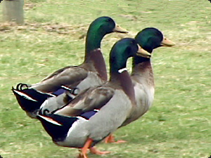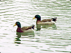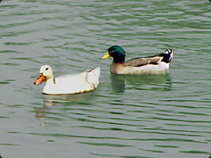 | Una di queste anatre ha una testa bianca e l’altra ha una testa verde. | У одной из этих уток белая голова, а у другой — зелёная. | ||
