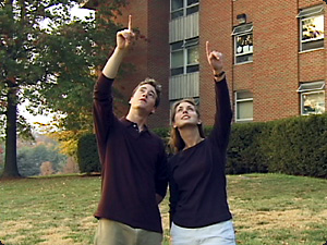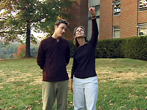 | Una persona sta indicando, l’altra no. | Один человек указывает, другой — нет. | ||