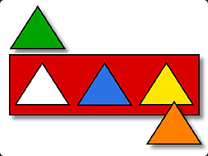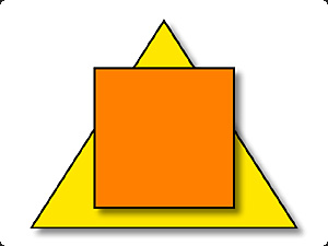 | Il quadrato è dietro il triangolo. | Квадрат находится за треугольником. | ||