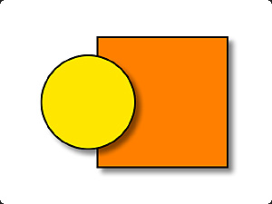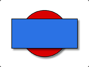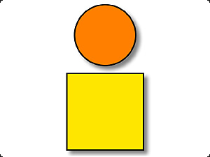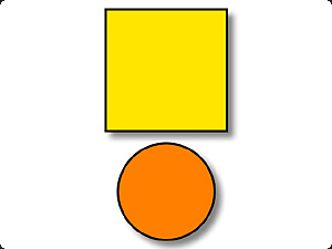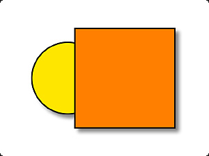| Il cerchio è dietro il rettangolo. | Круг находится за прямоугольником. | ||