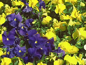 | Ci sono fiori gialli intorno ai fiori blu. | Вокруг синих цветов растут жёлтые цветы. | ||