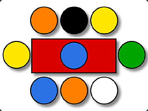 | Tutti i cerchi sono intorno al rettangolo. | Все круги находятся вокруг прямоугольника. | ||