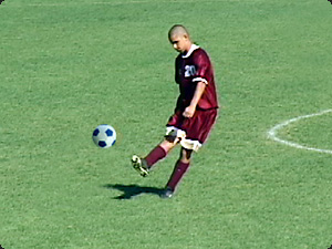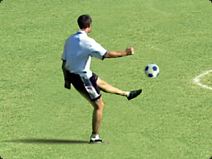 | Il ragazzo sta calciando con il piede destro. | Мальчик пинает правой ногой. | ||