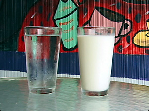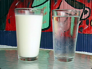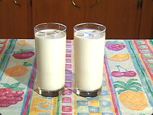 | Il bicchiere a destra ha del latte. | В стакане справа молоко. | ||