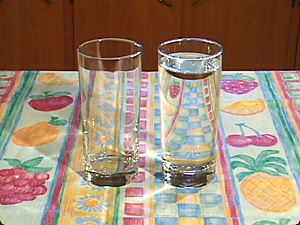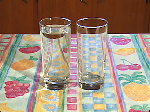 | Il bicchiere a sinistra è pieno d’acqua, ma il bicchiere a destra è vuoto. | Стакан слева полон воды, а стакан справа пуст. | ||