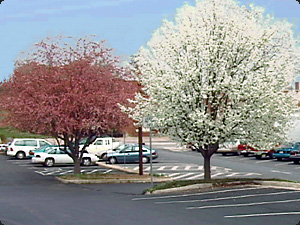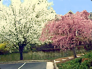 | L’albero a sinistra ha molti fiori bianchi. | На дереве слева много белых цветов. | ||