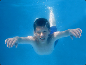 | Il bambino sta nuotando sottacqua. | Ребенок плавает под водой. | ||