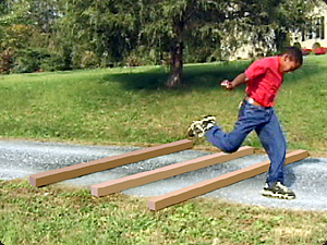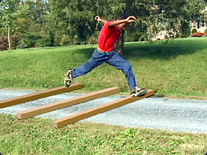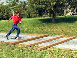 | Il bambino sta saltando le pertiche. | Ребенок перепрыгивает через столбы. | ||