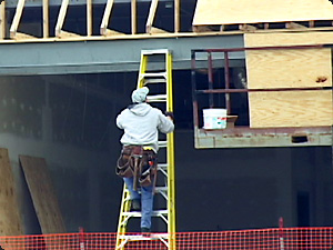 | L’operaio sta salendo la scala a pioli. | Рабочий поднимается по лестнице. | ||