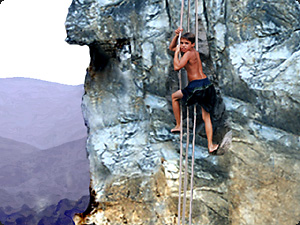| Lui sta usando una corda per scalare la montagna. | Он использует веревку, чтобы подняться на гору. | ||