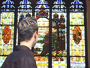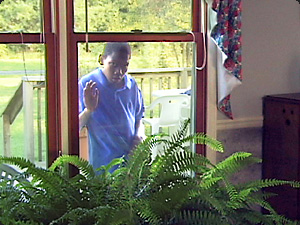 | Lui sta guardando attraverso la finestra. | Он смотрит в окно. | ||