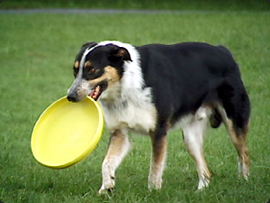 | Il cane ha un frisbee in bocca. | У собаки во рту фрисби. | ||
