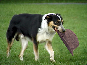 | Il cane ha un cappello in bocca. | У собаки во рту шляпа. | ||