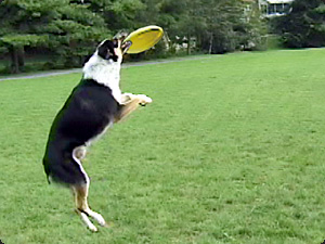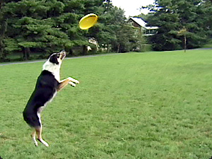 | Il cane sta cercando di prendere il frisbee. | Собака пытается поймать фрисби. | ||