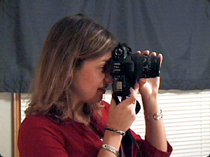 | La donna sta usando una macchina fotografica. | Женщина использует фотоаппарат. | ||