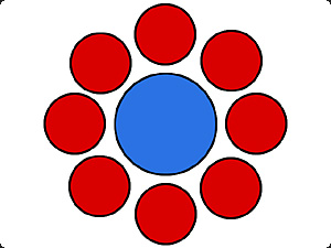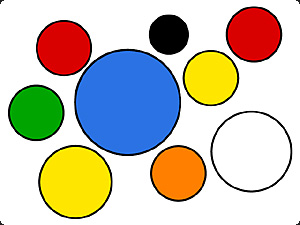 | Un cerchio è blu e gli altri sono rossi. | Один круг — синий, остальные — красные. | ||