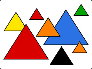 | Alcuni dei triangoli grandi sono verdi, e tutti i triangoli piccoli sono grigi. | Некоторые большие треугольники зеленые, а все маленькие треугольники серые. | ||