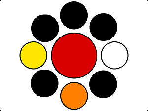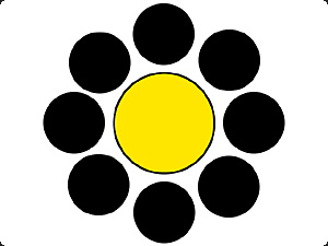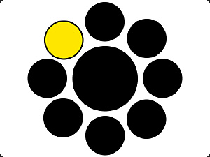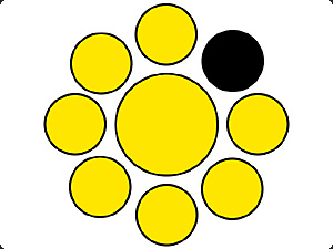 | Un cerchio è nero e gli altri sono gialli. | Один круг — чёрный, остальные — жёлтые. | ||