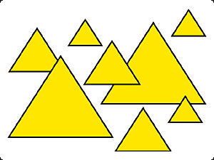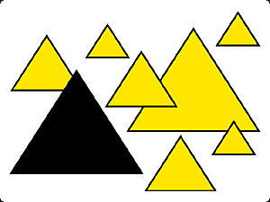 | Quasi tutti i triangoli sono gialli, ma uno è nero. | Почти все треугольники — жёлтые, но один — чёрный. | ||