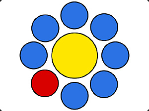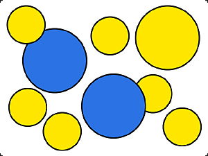 | Quasi tutti i cerchi sono gialli e due sono blu. | Почти все круги — жёлтые, а два — синие. | ||