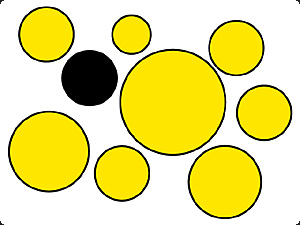 | Quasi tutti i cerchi sono gialli, ma uno è nero. | Почти все круги — жёлтые, но один — чёрный. | ||