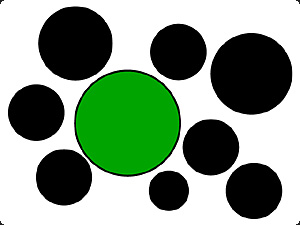 | La maggior parte dei cerchi sono neri e uno è verde. | Большинство кругов — чёрные, а один — зелёный. | ||