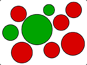 | La maggior parte dei cerchi sono rossi, e alcuni sono verdi. | Большинство кругов красные, а некоторые зеленые. | ||