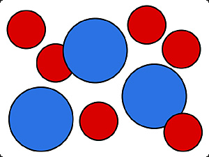 | I cerchi rossi sono grandi e quelli blu sono piccoli. | Красные круги большие, а синие маленькие. | ||