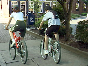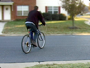 | Quali persone stanno andando in bicicletta sul marciapiede? | Кто едет на велосипедах по тротуару? | ||
