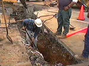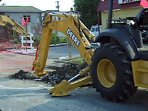 | La macchina sta scavando un buco nella strada. | Машина роет яму на дороге. | ||