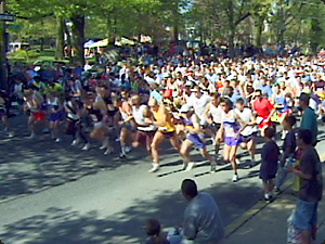 | La strada è piena di gente che corre. | Улица полна бегущих людей. | ||