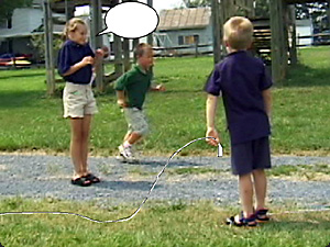 | Stavamo saltando alla corda. | Мы прыгали через скакалку. | ||