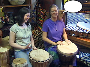| Stiamo suonando i tamburi e sorridendo. | ||