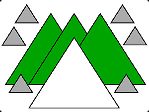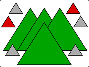 | Tutti i triangoli grandi sono verdi, e alcuni dei triangoli piccoli sono grigi. | ||