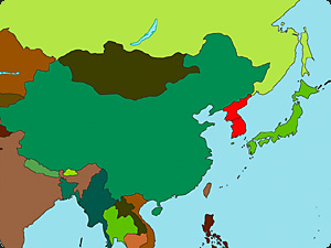 | La Corea è il paese asiatico colorato in rosso su questa mappa. | ||