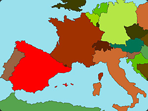 | La Spagna è il paese europeo colorato in rosso su questa mappa. | ||