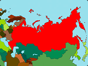 | La Russia è colorata in rosso su questa mappa. La Russia è in Europa e in Asia. | ||