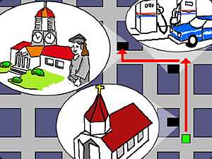| Dov’è l’università? Prosegua su questa strada e passi la chiesa che è a sinistra. Vada fino alla stazione di servizio e poi giri a sinistra. Prosegua per due isolati e là a destra c’è l’università. |