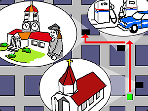 | Dov’è l’università? Prosegua su questa strada e passi la chiesa che è a destra. Vada fino alla stazione di servizio e poi giri a sinistra. Prosegua per due isolati e là a destra c’è l’università. |